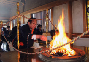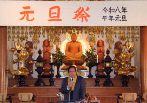 冬晴れの最高の天気の中、午前十時より初読経・初護摩焚きを行いました。 当日の晴れやかな空の様に今年一年明るい年であります様に、そして御先祖様への感謝の祈りと、会員の皆様の家内安全・健康・交通安全を祈願して、宣教師一同で読経させて頂きました。